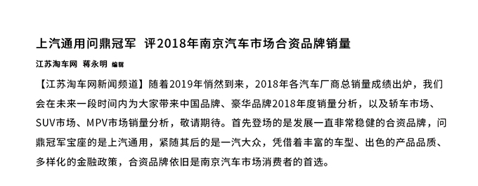 上汽通用问鼎 2018年南京汽车市场合资品牌销量分析