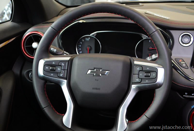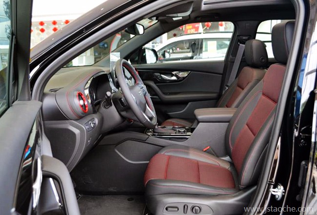 开拓者的内饰设计绝对让人耳目一新,看起来并不像是一辆中大型SUV,倒是和雪佛兰旗下经典跑车科迈罗相当接近,深色为主搭配一些红色装饰,更能迎合年轻人的审美。中控台顶端大多采用了软性材质包裹,并使用红色缝线进行了装饰。