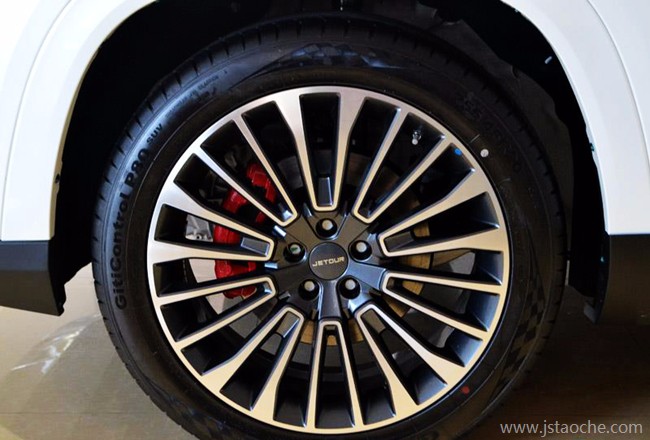 捷途X95的车身造型硬朗有力,车身线条却还带着几分灵动,如贯穿后门和后翼子板处近似抛物线的后腰线。悬浮式车顶是当下新车的主流设计,强调年轻时尚定位。20英寸的多条辐轮毂是旗舰SUV的做派。