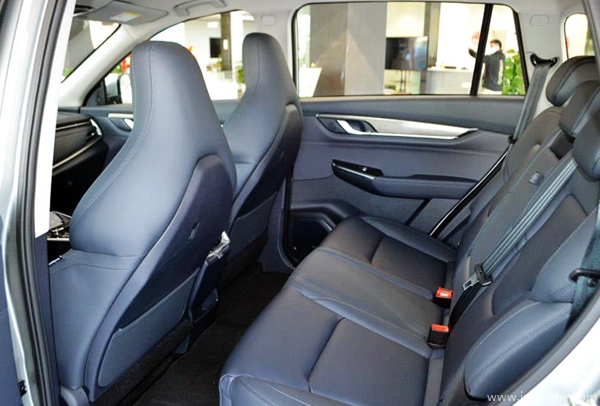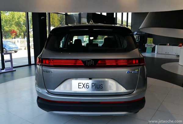 车尾部分,威马EX6 Plus依旧采用了贯穿式尾灯的,不过相比EX5,新车尾灯更有设计感,并且在中间融入了威马的LOGO,点亮效果不错。