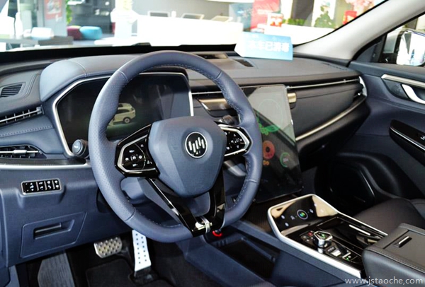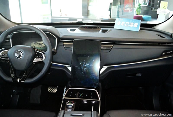车内中控采用非常简约的设计风格,仪表盘屏幕非常有科技感,中控屏幕带有旋转的设计,中控屏幕可显示的内容丰富,采用全黑的运动风格。内饰的造型运动又很有科技感。