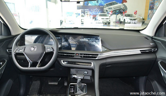 长安CS75PLUS的中控台配备了由全液晶仪表与中控显示屏组成的一体式大屏,从而营造出很强科技质感。同时,头枕一体式的运动型座椅配合类似游艇式电子挡杆,让新车看上去十分大气。
