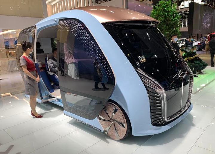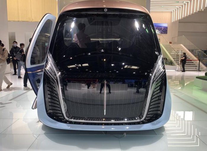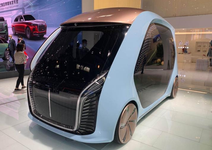 当人们的视线都被E-HS9以及H9+和HS7+车型抢去时,我们在本届车展的红旗展台上发现了一辆小巴,该车向我们展示了若干年之后的出行方式,结合外观来看非常具有未来感。