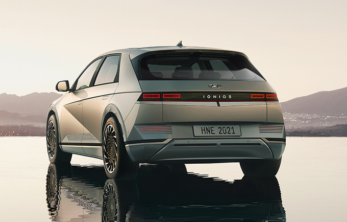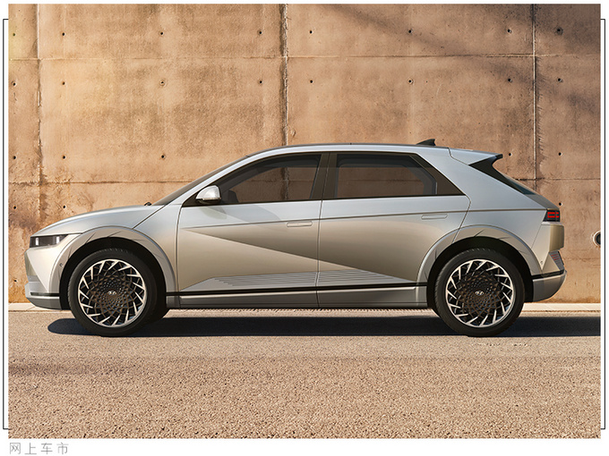 IONIQ 5外观与45概念车十分接近,包括矩阵LED大灯,棱角分明的车身腰线。贯穿式LED尾灯内部有若干个矩形块组成,营造出不错的科技感。尺寸方面,新车采用轿跑SUV的掀背式设计,长宽高分别为4635×1890×1605mm,轴距为3000mm。