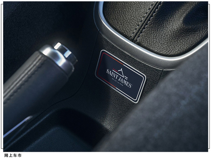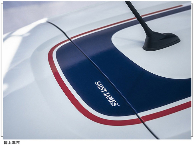 外观方面,新车采用了双色车身设计,车顶有黑色和白色两种颜色可选。此外,新车前脸采用了分体式蜂窝状格栅设计,双人LOGO向外延伸至两侧分体式头灯组,上方则采用矩阵式LED光源。车侧搭载以后16寸铝合金轮毂,车顶为悬浮式设计,上方带有专属的Saint James涂装,车身整体线条饱满,造型时尚、现代。