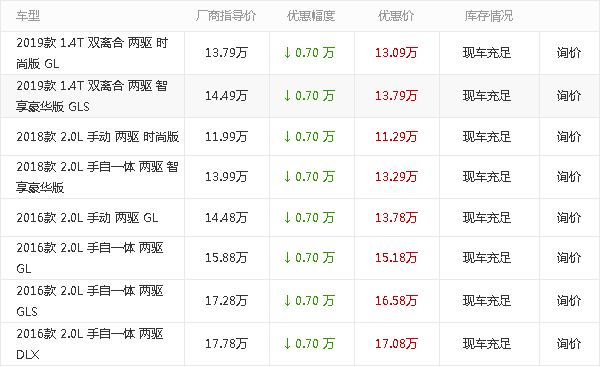 江苏悦达骏驰智跑优惠高达0.7万元