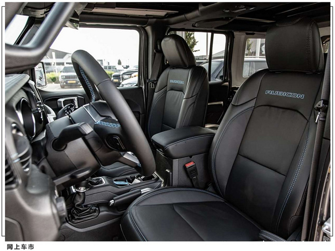 内饰方面,牧马人4xe Rubicon与普通版车型相比在细节上进行了调整,该车采用熏黑式的皮质材料包裹内饰,还配备了机械式仪表盘以及三幅式多功能方向盘,同时中央位置还搭载了8.4英寸的中控屏,包括GPS导航系统、路况信息展示系统、车载蓝牙以及语音识别系统。下方还配备有四驱挡位控制杆。车内空间十分宽阔,该车的长宽高分别为4882/1894/1838mm。此外,该车还配备了安全预警系统、胎压检测系统、倒车影像系统、前后差速锁以及多个安全气囊等安全配置。