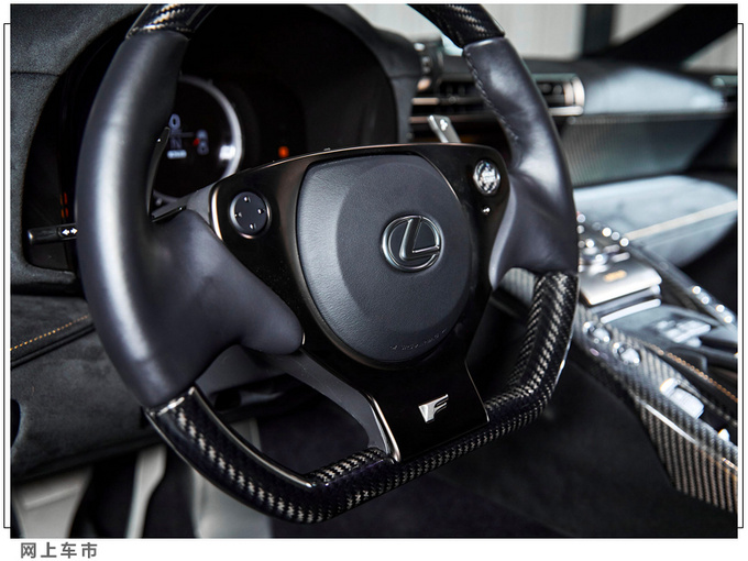 雷克萨斯LFA纽博格林版内饰配备了三辐式多功能方向盘,一键启动按键位于方向盘右侧。中控台上方提供了液晶数字仪表,同时内饰部分区域还加入了大量的碳纤维材质饰板,进一步降低了车身重量。