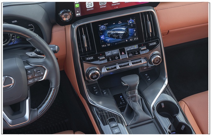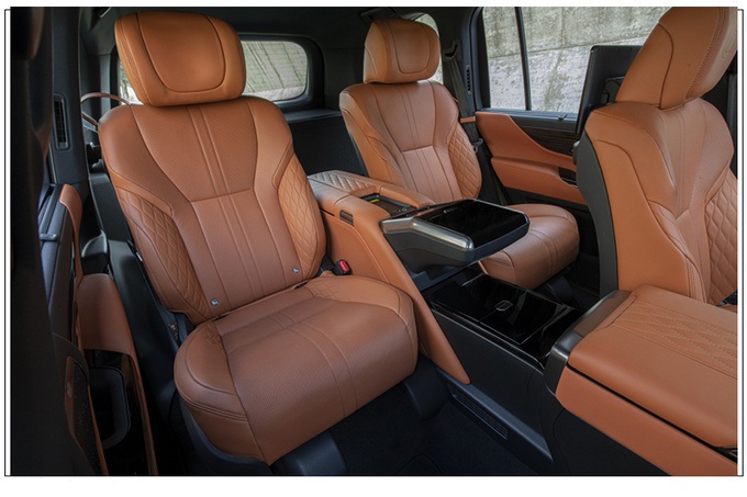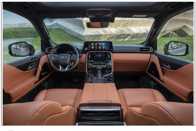 内饰上,雷克萨斯LX根据不同等级也有着不同配置,顶配车型VIP版采用4座设计,具有同级车型中最出色的驾乘感受。新车的中控台整体依旧采用Tazuna Concept(缰绳)设计概念,绝大部分的功能都被集成在了中控台顶端的12.3英寸悬浮式中控屏内,支持语音控制、Apple CarPlay/Android Auto手机互联、远程OTA、车载WiFi以及互联网浏览等功能。