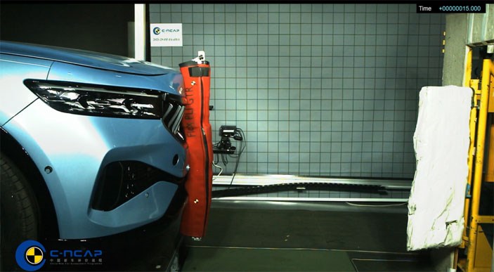 行人保护试验是通过模拟车辆碰撞行人后,行人受到的伤害程度,包括头部碰撞试验和腿部碰撞试验。岚图充分考虑到碰撞发生后的行人安全,通过从造型设计到前机舱布置空间和结构优化,为行人提供全方位的安全保障。经测试,岚图FREE对车外行人头部和腿部的保护效果良好,该项得分11.263分(满分15分),得分率75.09%。