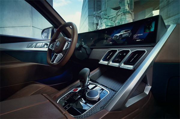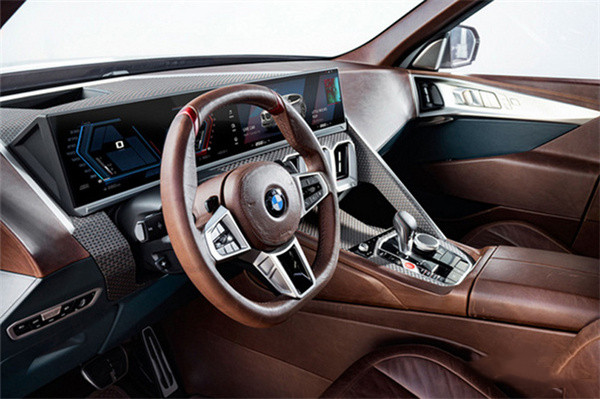从此前发布的内饰官图可以看出,宝马全新XM配备了最新三辐式多功能方向盘,并搭载悬浮式仪表+悬浮式中控一体式曲面屏幕,下方还提供了传统的M系列换挡机构。同时,新车还在内饰多处加入了真皮材质包裹件,部分物理按键或将升级为触控式设计,相比品牌旗下7系、X7等车型更具豪华气息。