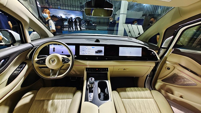 内饰一个巨型的环形屏格外抢眼,33.8英寸的环幕式超视网膜屏十分抢眼,其分辨率为8960×1320像素,达到9K水平,像素密度更是达到271PPI,其搭载的是高通旗舰级8155芯片。