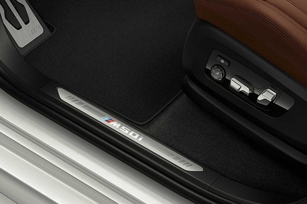 传动部分两款新车均匹配8速手自一体变速器,并配有带M运动差速器的xDrive四驱系统。其中X5 M50i的0-100km/h加速时间为4.1秒,而X7 M50i的0-100km/h加速时间为4.5秒。X5 M50i的极速为209km/h,X7 M50i的极速为250km/h。此外,两车的悬架部分都经由重新设定,X5 M50i车型搭载了自适应悬架系统,而X7 M50i则配备了空气悬架。