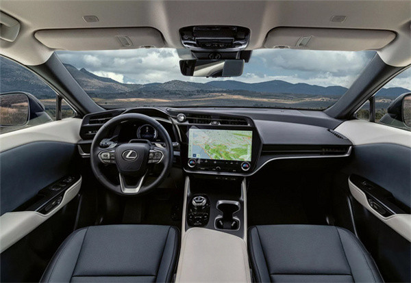 内饰方面,雷克萨斯全新RZ将配备三辐式多功能方向盘,并搭载7英寸液晶仪表以及14英寸嵌入式液晶中控屏幕,下方还提供了电子旋钮式换挡机构。而部分车型还将提供HUD抬头显示器、13扬声器Mark Levinson高级音响系统、停车辅助系统、交通拥堵辅助系统等。