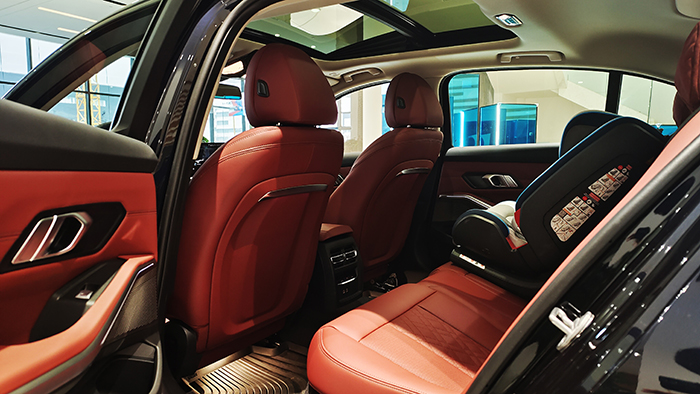 i3的轴距和3系一致,2966mm在B级车领域算是出色的那一类,坐在后排腿部空间很宽裕,加上全景天窗的存在,乘坐舒适性表现不俗。