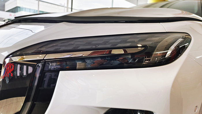 大灯也是一大看点,棱角分明的设计就很突出,内部集成了21颗独立发光单元,可以自定义5种日间行车灯模式,靠近车辆时还有迎宾灯语。