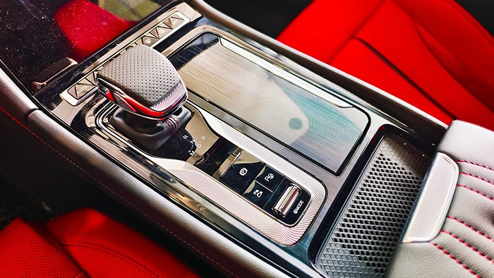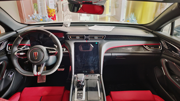 红旗H6的内饰在配色和材质搭配上做出了一些不同,算是和H5的最大区分,首先是方向盘,翻毛皮的引入和造型上的小幅改动,让H6的方向盘握感更运动,符合H6的轿跑定位。