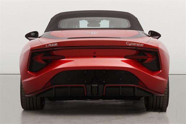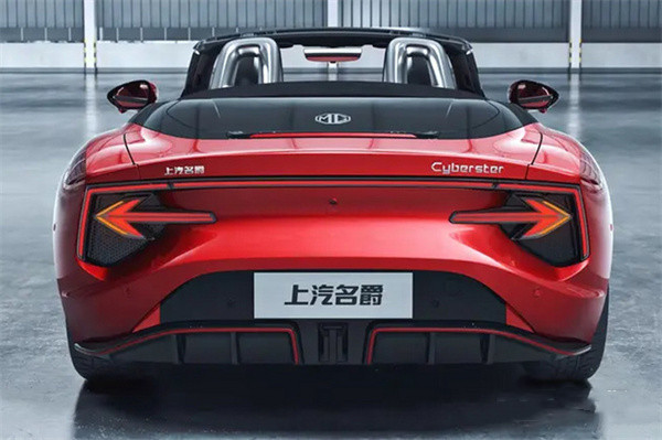 Cyberster高度还原概念车外观设计,LED大灯组带有三点式日行灯带,与保时捷有几分相似,保险杠两侧造型上扬;车侧线条平直,选用双色轮毂;车尾最具辨识度的是箭头样式灯组,下方加入扩散器装饰。
