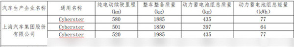 Cyberster提供64kWh、77kWh三元锂电池组,对应续航里程为501km、520/580km。新车单电机后驱车型分为两种调校,最大功率分别为231kW和250kW;双电机车型前、后电机最大功率分别为150kW和250kW。