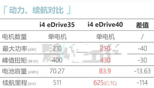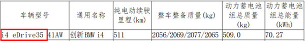 参考海外版,宝马i4 eDrive35的后置单电机最大功率为210kW,峰值扭矩400N·m。工信部数据显示,i4 eDrive35搭载70.27kWh的三元锂电池组。