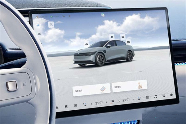 极氪007内饰配备半圆形液晶仪表盘、15.05英寸 2.5K OLED向日葵屏、35.5英寸 AR-HUD抬头显示系统、贯通式天幕、21扬声器7.1.4杜比全景声高级音响、全景天幕和64色氛围灯(车内共14处)等,座椅采用NAPPA全粒面头层真皮。