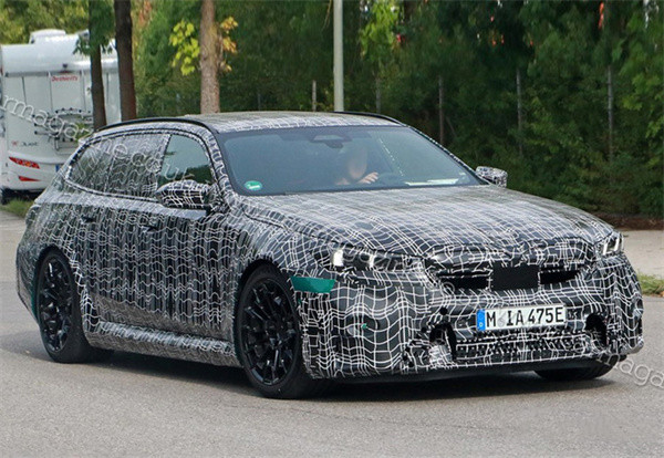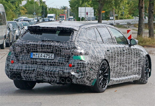 从此前发布的外观渲染图片以及路试谍照图片中可以看出,宝马全新一代M5以及M5 Touring车型,头部均装配了大尺寸熏黑双肾格栅,上方还加入了M系列车型专属徽章。车尾部分均采用了双边双出式排气布局,三厢版车型尾门上方还将加入小尺寸扰流板。