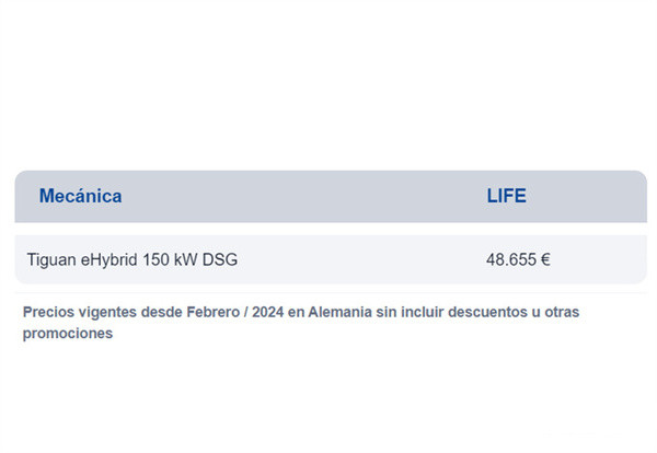 而动力方面,大众全新Tiguan eHybrid车型将搭载一台1.5T涡轮增压发动机+电动机所组成的插电式混合动力系统,综合最大功率分别为150kW、200kW,传动系统匹配7速双离合变速箱。同时新车还将配备净容量为19.7kWh电池组,纯电续航里程为120公里(第二代Tiguan插混车型纯电续航为49公里)。