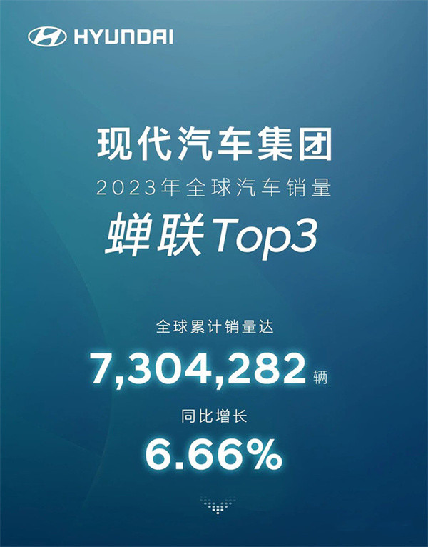 现代集团2023再创新高!销量达730万辆!全球第三