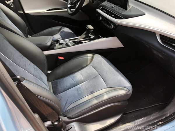 座椅方面是使用了皮革和翻毛皮拼接的设计,既不会有圈皮革的冬冷夏热的尴尬,也增加了摩擦性,在行车的时候增加安全性。由于VELITE 6是纯电动车型,不要有汽油车的传动或者排气管的设计,所以第二排中央地板能够做到全屏,使得后排即便是满载3人也不会出现脚部拥挤的情况。