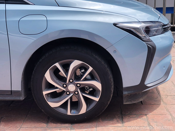 侧面线条也是VELITE 6特别的一处地方,由于车身做成了类似旅行车的形式,所以VELITE 6使用更多、更复杂的线条来减少旅行车由于较长的车身带来的臃肿的影响。17寸的轮毂配合上马牌MC5 215宽度的轮胎,这款轮胎主打操控和舒适性,而没有使用市面上大部分新能源车型使用的静音节能轮胎,看来别克对于VELITE 6的期望不是单纯的长续航。
