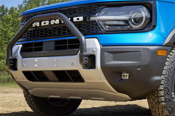 据悉,福特新款Bronco Sport车型首次增加了全新的Sasquatch越野套件,并仅提供Outer Banks和Badlands车型选装,配备29寸固特异Territory全地形轮胎、钢制保险杠、额外的车身底部保护装置和集成式牵引钩。同时Badlands车型还将提供新的悬架系统,其车身离地间隙增加了10mm,选装Sasquatch套件后还可获得背负式储液器的Bilstein后减震器,并将后悬架行程增加到221mm。