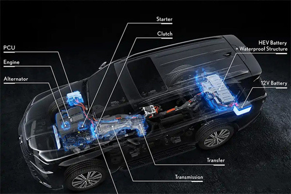 新车作为LX系列首款混合动力车型,搭载全新P2架构的并联式混合动力系统,电机位于发动机和变速箱之间,电机最大功率50kW,最大扭矩250N·m,系统最大功率336kW,最大扭矩790N·m,零百加速6.5s,动力性和燃油经济性更强。