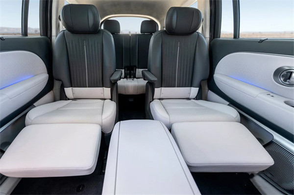 内饰部分,现代全新Ioniq 9将配备双12英寸一体式悬浮式屏幕,并标配8个扬声器,且可选配Bose的14个扬声器音响系统。其他主要功能包括多个100瓦高输出USB-C端口,可直接从110.3kWh电池组接收电力。而现代最新的安全功能套件则列为标准配置。其中包括前方防撞辅助、车道保持辅助、盲点防撞辅助、安全出口警告、后方交通防撞辅助和远光灯辅助以及10个安全气囊等。