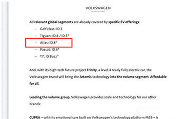 据此前消息显示,大众汽车已宣布品牌旗下途锐车型,计划将于2025年正式停产。根据大众内部文件显示,品牌计划将推出一款名为“ID.8”的全新中大型SUV,新车将极大程度取代即将停产的途锐车型。