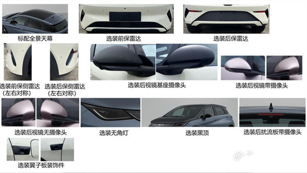 比亚迪新海豚已完成申报,采用全新封闭式格栅、矩阵LED大灯组、车身同色/黑色外后视镜、黑色车顶、双拼色轮毂和海豹06GT同款贯穿式尾灯,标配全景天窗、后雨刮器等,车长增至4280mm(现款4125mm),轴距2.7m,与现款一致。新车提供3种动力,全系匹配弗迪刀片电池,高配电机最大功率150kW(现款130kW)。
