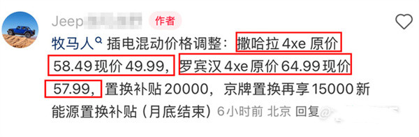 Jeep牧马人油电同价!混动官降8.5万,只卖49.99万起