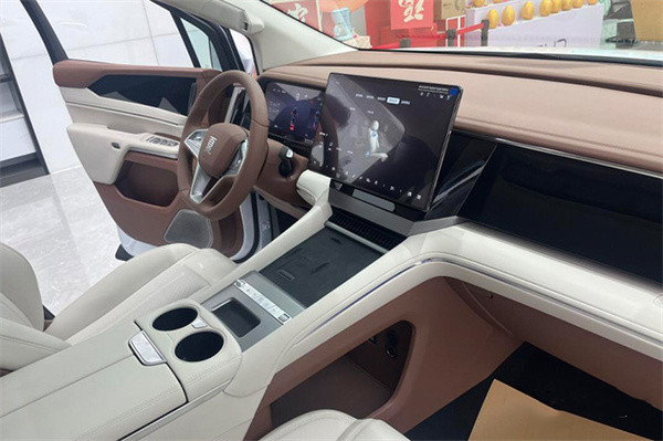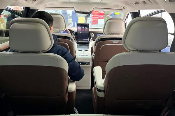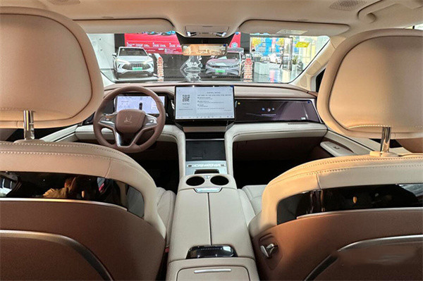 新车全系标配“天神之眼”高阶智能驾驶辅助系统,采用2+2+3的7座布局,前排配备3块大屏,2排搭载吸顶屏、冰箱以及独立航空座椅。