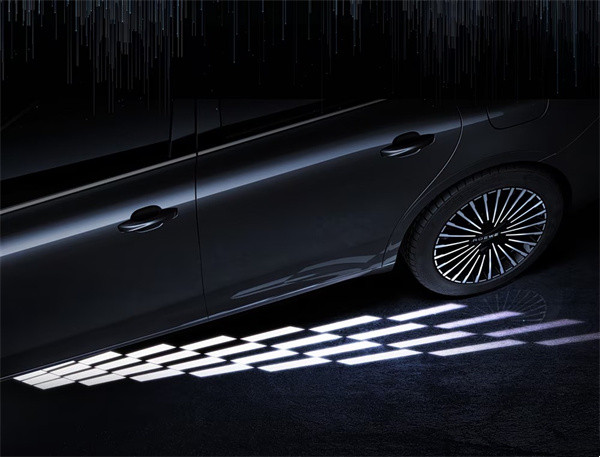 荣威M7 DMH大气稳固的车身比例,直瀑式中网,不仅延续了明珠概念车标志性的纵向视觉延展特征,并且更加大气。矢量光轨晶钻日行灯沿袭自明珠概念车全新设计语言,首次加入“ROEWE”呼吸光语LOGO灯,夜间发光均匀,日间依旧有金属光泽,更具辨识度。配备同级唯一的荣耀迎宾光毯。