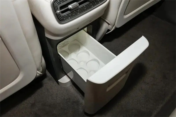 在配置方面,新车加入了副驾腿托、车载冰箱等配置,而后排座椅还支持电动靠背角度调节,门板上设有座椅加热、通风按键。